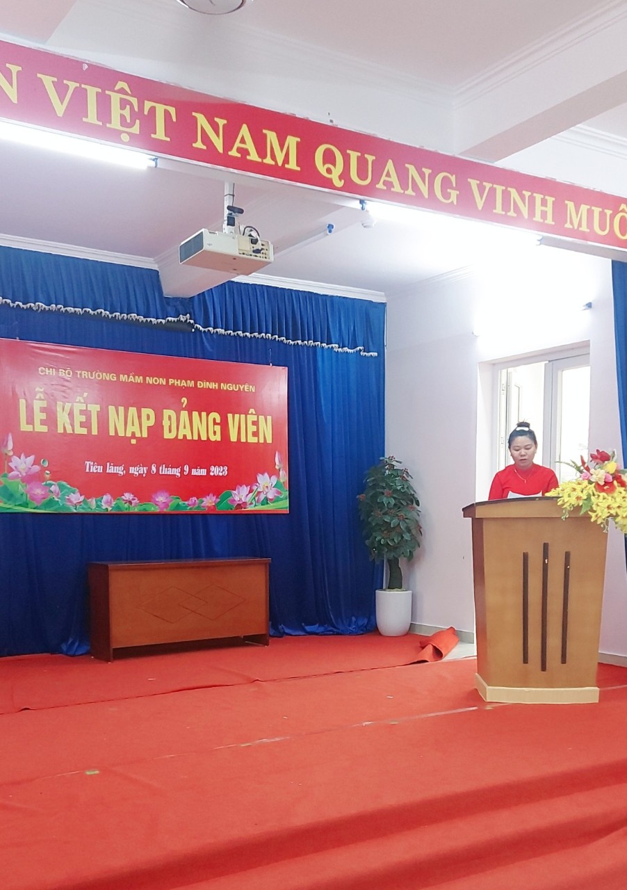 Chiều ngày 08 tháng 09 năm 2023 Chi Bộ trường mầm non Phạm Đình Nguyên long trọng tổ chức " Lễ kết nạp Đảng viên" cho đồng chí Nguyễn Thị Làn. Về dự lễ kết nạp có đồng chí Dương Thị Huyền Bí Thư Chi Bộ Hiệu trưởng nhà trường, các đồng chí trong cấp ủy và 100% các đồng chí Đảng viên có mặt đông đủ. Buổi lễ đã diễn ra thành công tốt đẹp.
