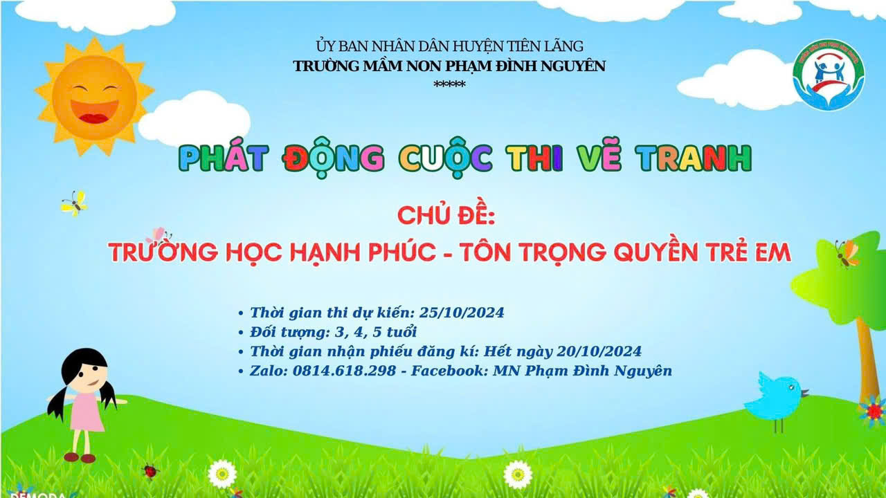 💥 Cuộc thi vẽ tranh cấp trường với chủ đề “Trường học hạnh phúc - tôn trọng quyền trẻ em” dành cho các bé có độ tuổi từ 3 đến 5 tuổi đang học tại trường Mầm non Phạm Đình Nguyên.